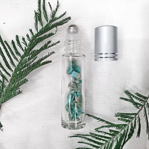 Your added essential oils are enhanced by amazonite chips inside the bottle.