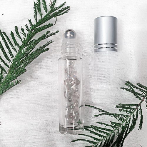 Your added essential oils are enhanced by kunzite chips inside the bottle.