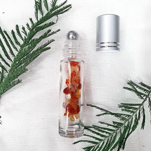 Your added essential oils are enhanced by carnelian chips inside the bottle.