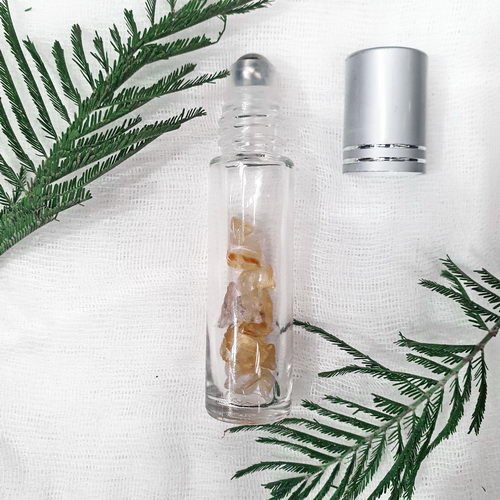Your added essential oils are enhanced by citrine chips inside the bottle.