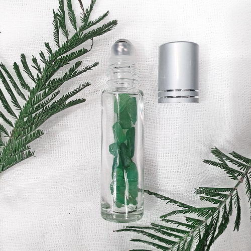 Your added essential oils are enhanced by green aventurine chips inside the bottle.