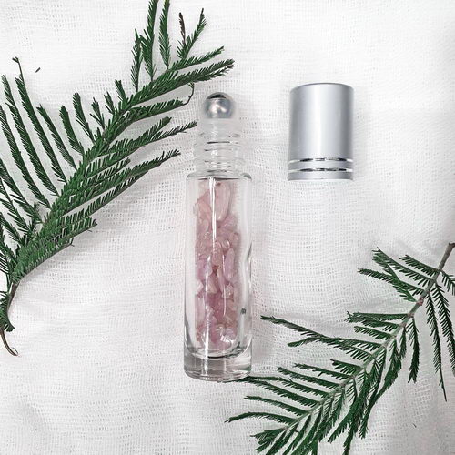 Your added essential oils are enhanced by rose quartz chips inside the bottle.